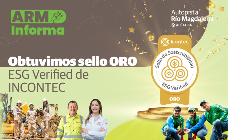 Obtuvimos sello ORO ESG Verified de INCONTEC ARM ratifica su compromiso con la vida, las personas y el futuro. En Autopista Río Magdalena, hemos alcanzado un reconocimiento, gracias a nuestra gestión empresarial: somos la primera Concesión Vial en Colombia que recibe el Sello ORO de Sostenibilidad ESG Verified de